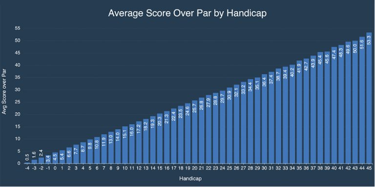 • Higher-handicap golfers tend to score 5–6 shots above their handicap